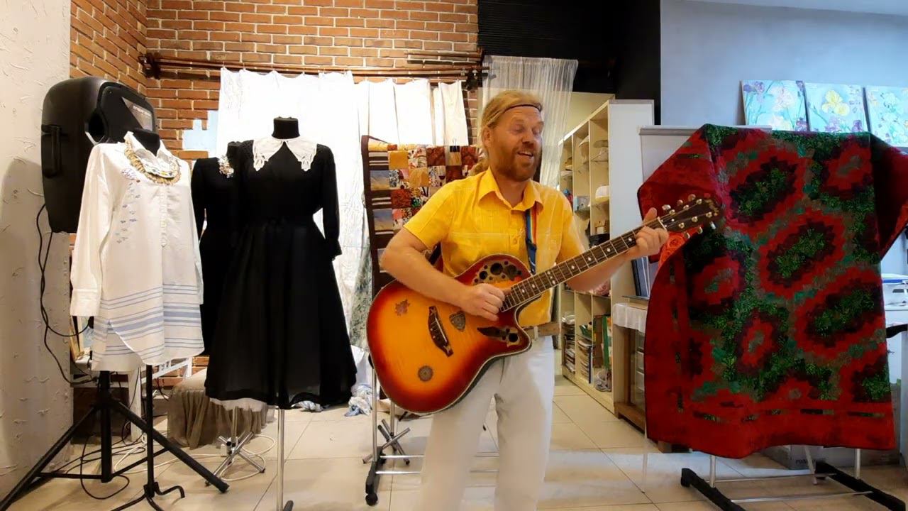 04.06.22г. Концерт Солнечного Барда Михаила Сафронова в "Европа Сити-Молл", Швейное кафе. Песня "Изгиб гитары желтой"".