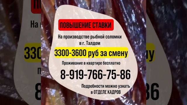👉🏻РАБОТА ВАХТОЙ 👉🏻Московская область 🤝Занимаемся изготовлением вяленой рыбной соломки к пиву (камбала, карась, щука, судак, горбуша и т.д) ❗️Бронируйте Сейчас! 👇🏽👇🏽👇🏽 ☎️ 89197667586 (WhatsApp, Viber) http://wa.me/79197667586 ☎️ 89772511123 (WhatsApp, Viber) http://wa.me/79772511123 Наш Телеграмм канал с видео о работе и отзывами сотрудников: Работа.Вахта.Абсолют Подписывайтесь, и будьте в курсе всех новостей с наших производств. 🤳🏽 https://t.me/vahta_ok Яндекс Дзен: https://clck.ru/3CMSQT Страничка ВК: https://clck.ru/39yBwc Страничка в ОК: https://clck.ru/39yC23 #тольятти #ульяновск #нижнийновгород #челябинск #краснодар #кемерово #новокузнецк #альметьевск #липецк #тверь #иваново #нижнийтагил #курган #армавир #абакан #майкоп #калуга #смоленск #таганрог #златоуст #копейск #железногорск #ростов #елец #крым #нижнекамск #орск #арзамас #саранск