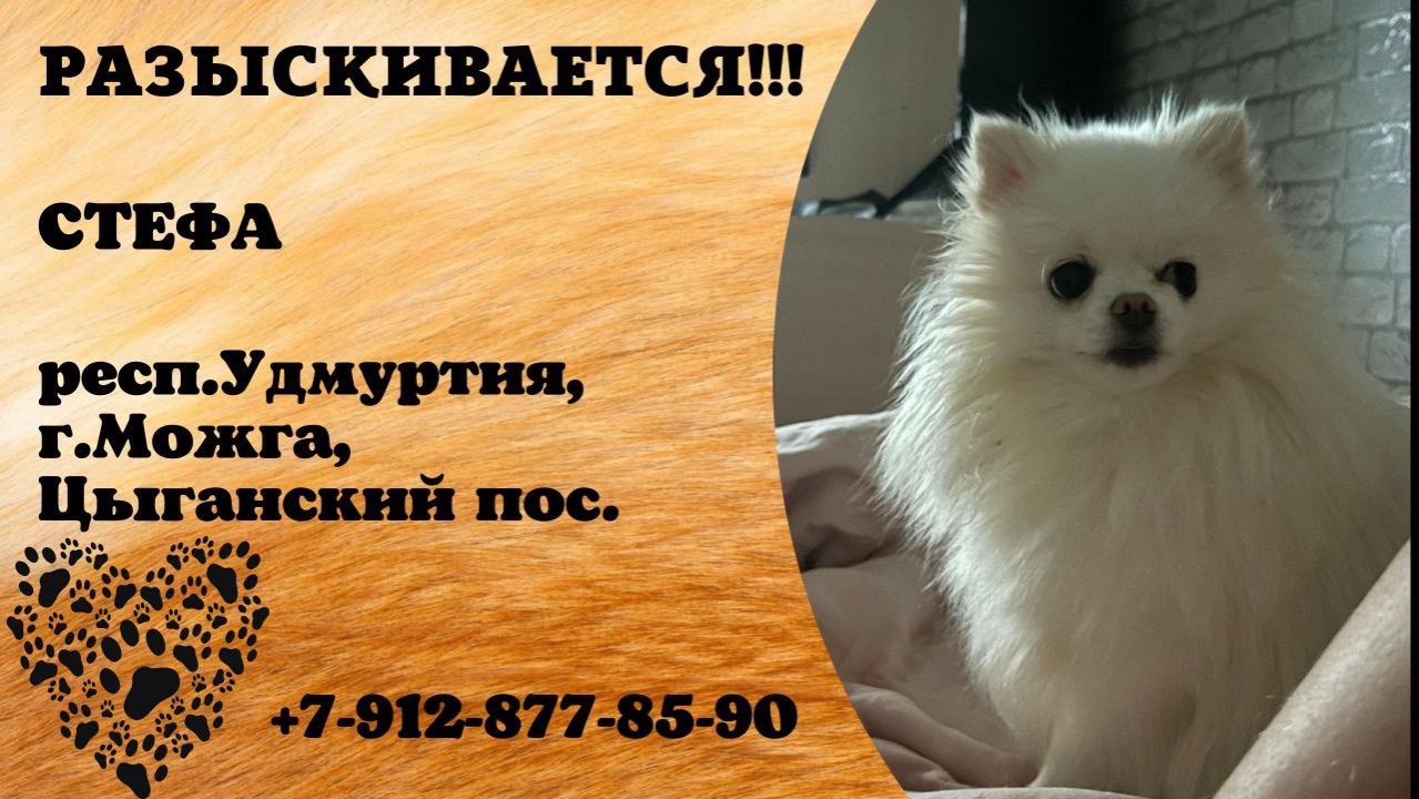 Удмуртия Можга Пропала собака ПОТЕРЯЛАСЬ СОБАКА!ВОЗНАГРАЖДЕНИЕ ЗА НАХОДКУ! ПРОПАЛА СОБАКАПропала собака породы померанский шпиц ,по кличке Стефа .Пропала на цыганском поселке г.Можги 17.12.25 Если видели ее или нашли позвоните по номеру 7-912-877-85-90 Инфо: https://vk.com/wall-198815410_215346 #пропала_собака #удмуртия #можга #шпиц