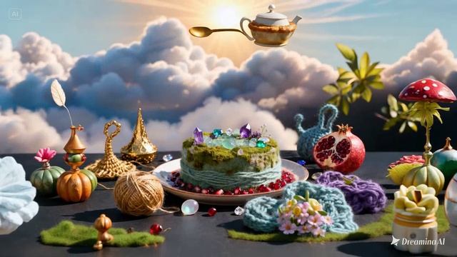 dreamina-2026-03-06-1243-pie in the sky, teapot, spoons are flyin...