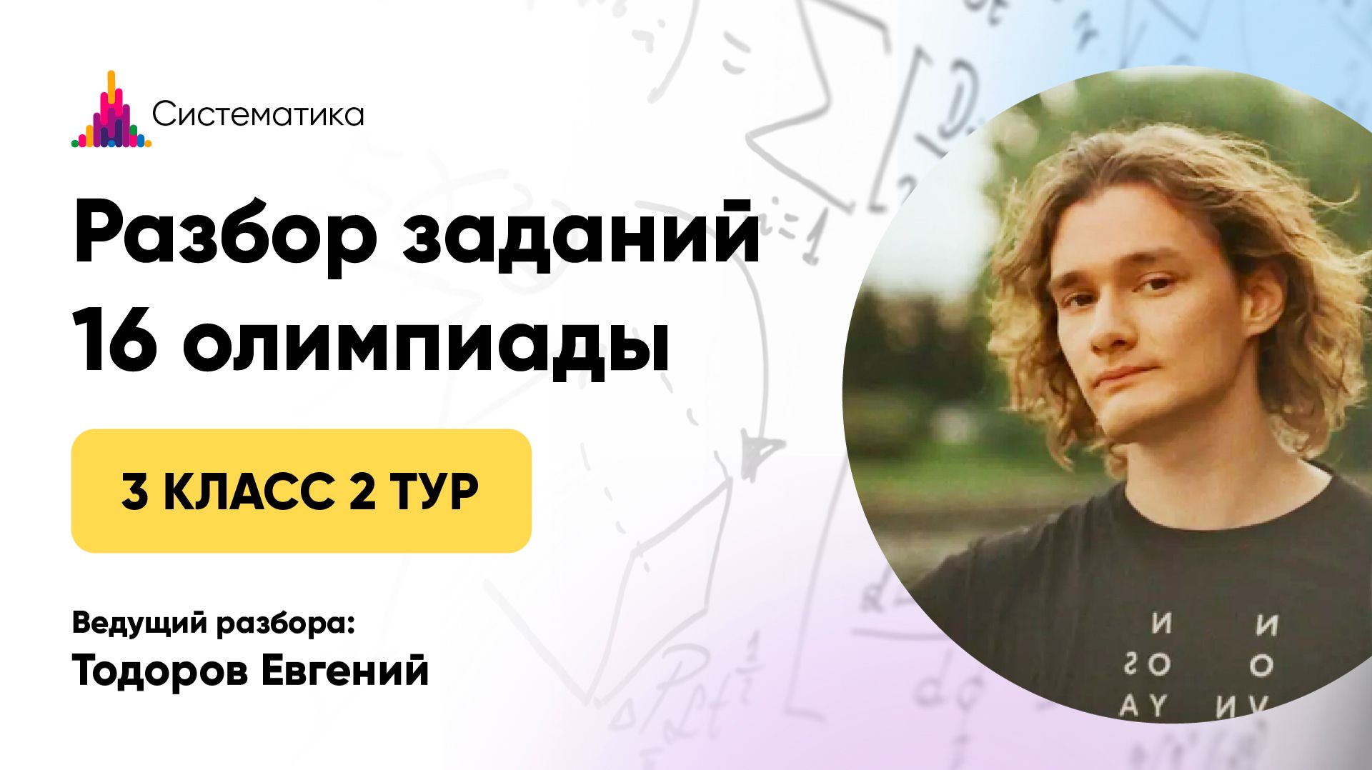 Разбор задач 2 тура 16 олимпиады по математике для 3 класса Записаться на очередную олимпиаду — https://systematika.org/olimpiada/math/ Онлайн-занятия в мини-группах По одному абонементу можно заниматься сразу в нескольких кружках. Олимпиадная математика для 1–9 классов — https://systematika.org/online-courses/live-math/ Шахматы для 1–9 классов — https://systematika.org/online-courses/chess/ ТРИЗ для 1–7 классов — https://systematika.org/online-courses/triz/ Биология для 3–7 классов — https://systematika.org/online-courses/biology/ Индивидуальные занятия Опытные преподаватели из лучших вузов России помогут достичь высоких результатов в обучении! Олимпиадная математика — https://systematika.org/online-courses/live-math-repetitor/ Школьная математика — https://systematika.org/online-courses/school-math-repetitor/ Шахматы — https://systematika.org/online-courses/chess-repetitor/ ТРИЗ — https://systematika.org/online-courses/triz-repetitor/ Биология — https://systematika.org/online-courses/biology-repetitor/ Химия — https://systematika.org/online-courses/chemistry-repetitor/ Физика — https://systematika.org/online-courses/physics-repetitor/ Курсы Выбирайте только те темы, которые интересны вам. Олимпиадная математика — https://systematika.org/items/matematika/ Программирование — https://systematika.org/items/programmirovanie/ Физика — https://systematika.org/items/fizika/ История — https://systematika.org/items/istoriya/ Шахматы — https://systematika.org/items/shahmaty/ Soft skills — https://systematika.org/items/soft-skills/ Более 150 курсов в записи и вживую на сайте — https://systematika.org/form/courses/