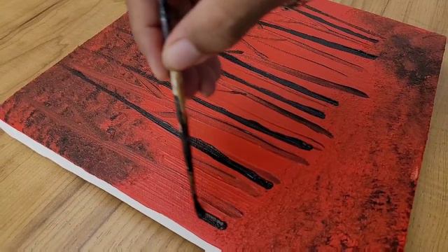 How To Draw A Forest Painting / Just Using Two Colors / Red & Black / Easy Art Technique / Relaxing
