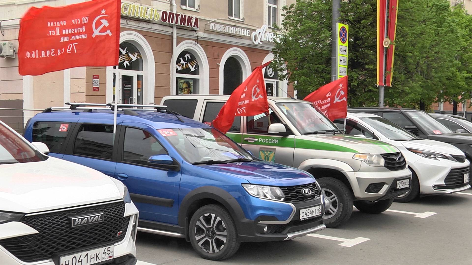 От кинотеатра «Россия» в Кургане в честь 80-й годовщины Великой Победы стартовал автопробег «Дорога к ветерану». Активисты акции отправились лично поздравлять героев ВОВ.