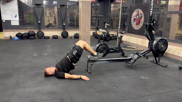 Сгибание голени с ногами на гребном (полное разгибание в тазу)|Leg curl on row
