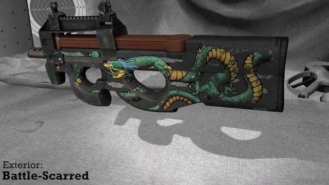 Emerald Dragon P90 StatTrak stickers skin preview FN/MW/FT/WW/BS
