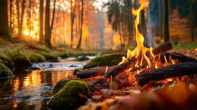 Осенний костёр у воды | Уютные звуки костра в атмосфере заката