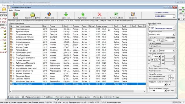 GymOrganizer25: Часть 2. Создание групп и потоков. Загрузка гимнасток