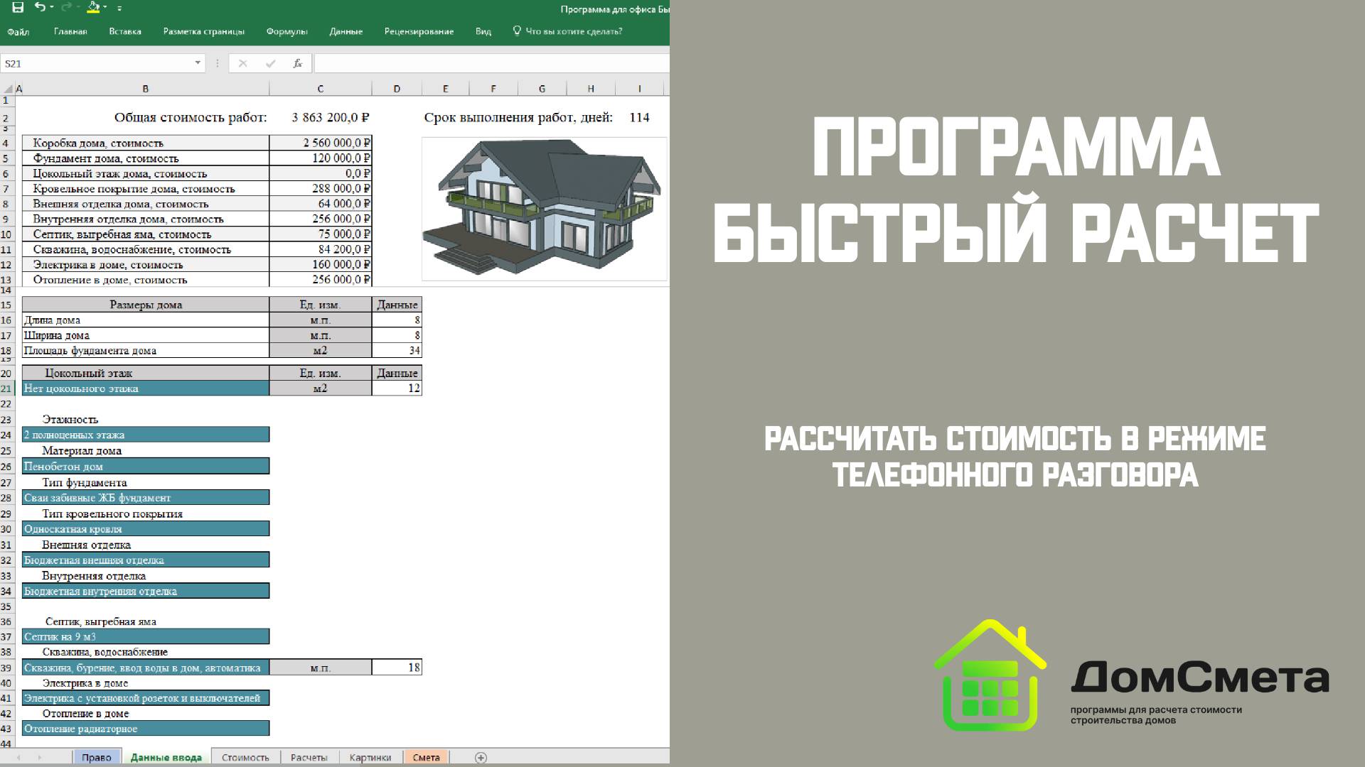 Программа предназначена для быстрого расчета стоимости строительства. 🌏Наш сайт: ►https://www.domsmeta.pro 📱Ссылки на соцсети: Мы в VK: ►https://vk.com/domsmeta Мы в Яндекс.Дзен: ►https://dzen.ru/domsmeta