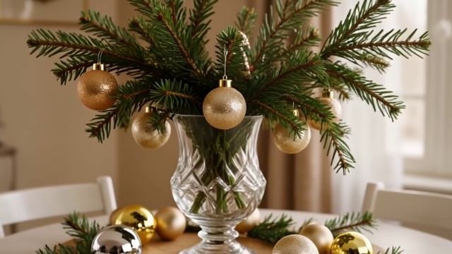 Футаж. Сосновая ветка. Новогодние игрушки.