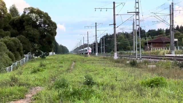 Сапсан Эвс2-04 летит из Москвы на скорости под 250 км/ч
