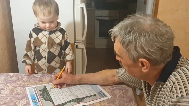 Дед и внук_Маленький помощник_Разгадывают кроссворд_Полная идиллия.