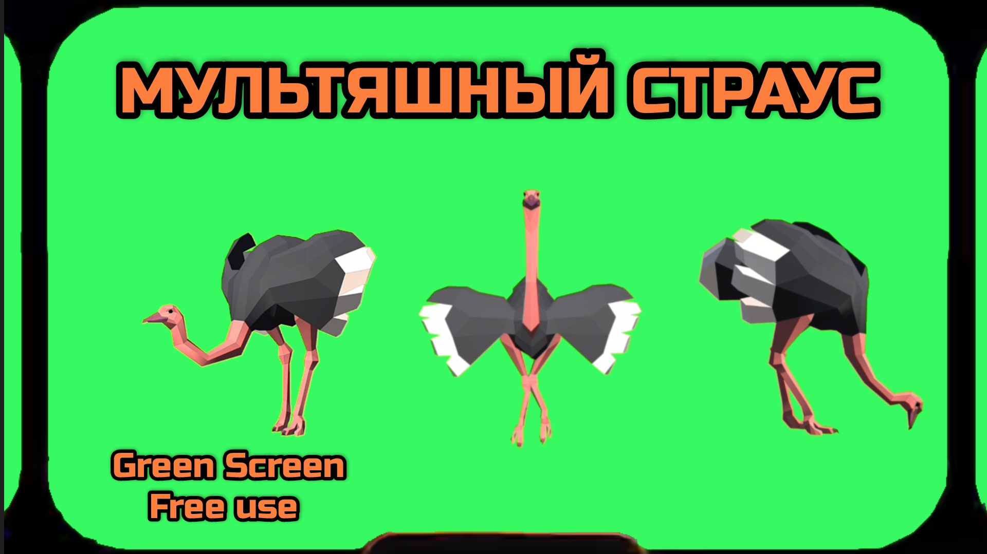 МУЛЬТЯШНЫЙ СТРАУС видео Green Screen футаж. ХРОМАКЕЙ АНИМАЦИЯ на зелёном фоне.