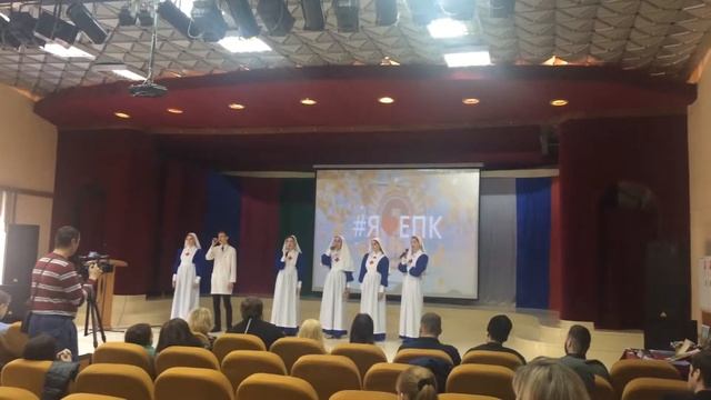 Несколько кадров с краевого фестиваля духовной культуры "Вера моя православная", с участием студентов Ейского медицинского колледжа, занявших 1-е место. Съёмка на фотоаппарат (качество низкое).