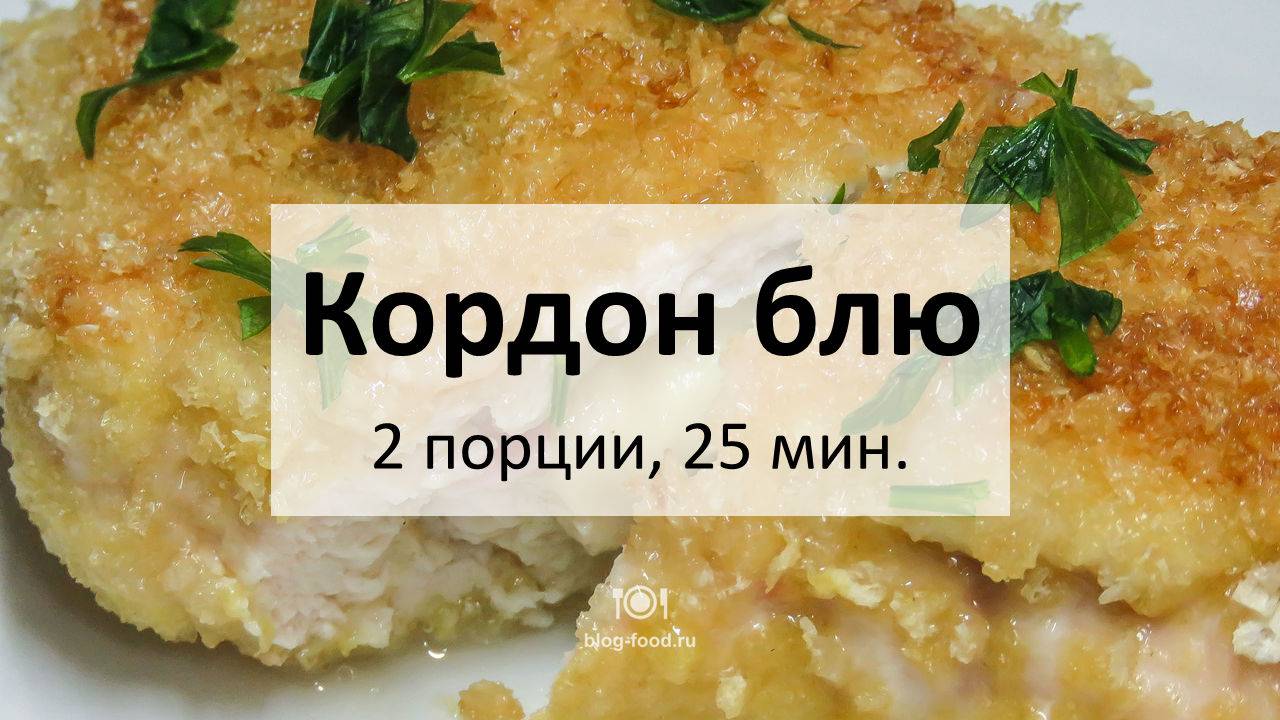 Всем привет! Сегодня попробуем сделать всем известное блюдо французской кухни. Можно долго рассуждать, откуда у этого вкуснейшего фаршированного шницеля такое название (а версий, как оказывается, тут уйма), но мы перейдем сразу к делу. • Куриная грудка, 2 шт. • Ветчина, 70 гр. • Яйцо, 1 шт. • Сыр, 50 гр. • Горчица, 1 ч. л. • Панировочные сухари, стакан • Мука, 2 ст. л. • Чёрный перец, растительное масло, соль Режем ломтиками сыр и ветчину, яйцо взбалтываем с горчицей. Грудку разрезаем вдоль не до конца, раскрываем, отбиваем плоской стороной молотка, солим, перчим по вкусу, выкладываем сыр с ветчиной, закрываем. Обваливаем шницели в муке, потом в яйце и панируем в сухарях. Разогреваем на сковороде 4 столовых ложки растительного масла, обжариваем курицу по две минуты с каждой стороны, после чего отправляем в духовку, разогретую до 180°С, на 15 минут. Приятного аппетита! Читать на сайте с картинками: https://blog-food.ru/421