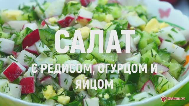 Самый весенний, самый быстрый и самый вкусный салат с редисом, огурцом и яйцом. Еще больше рецептов смотрите на нашем сайте https://kedem.ru/recepty-s-foto/ Время приготовления - 15 минут. Ингредиенты: 5-6 редисок, 1 свежий огурец, 2 яйца, 1 пучок укропа, 2 ст. ложки майонеза, соль по вкусу. Приготовление: 1. 2 яйца отварить, остудить и очистить. 2. В миску нарезать кубиками огурец. 3. Нарезать кубиками редис и добавить в миску к огурцам. 4. Укроп мелко нашинковать и добавить в миску. 5. Яйца не крупно нарезать и добавить в миску. 6. Посолить по вкусу и перемешать. 7. Выложить в салатницу, заправить перед подачей майонезом или растительным маслом, или сметаной. 8. Салат с редисом, огурцом и яйцом готов. Можно подавать к столу. Приятного аппетита! #кулинарныйэдем #еда #рецепты #вкусно #кулинария #рецепт #чтоприготовить
