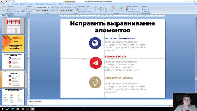 выравнивание объектов на слайдах презентации