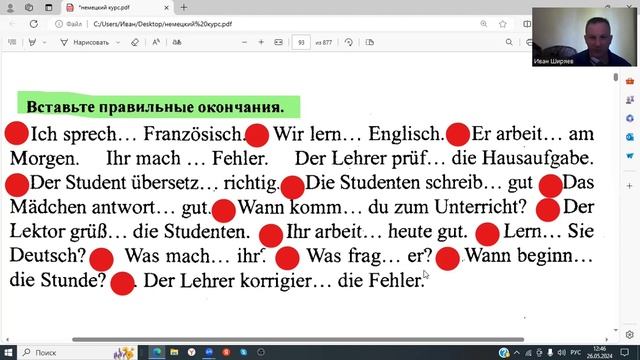 Немецкий курс 15 Упражнения на повторение, видеоурок