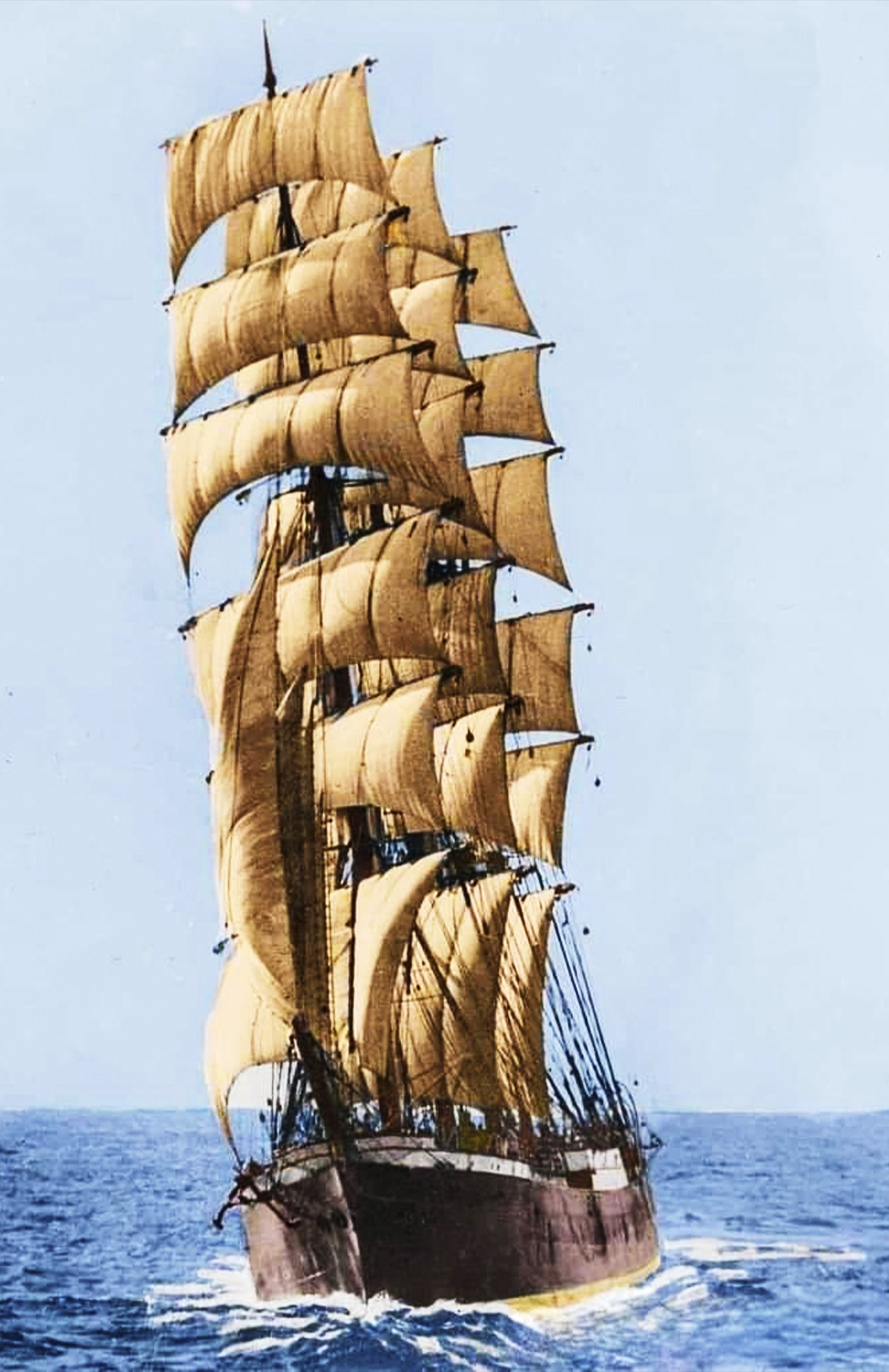 Нашёл в Сети короткометражный фильм (без звука) Ссылка на видео: https://www.youtube.com/watch?v=AS01pYi2S38, с указанием на то, что кадры клипа соединены из трёх фильмов из коллекции Морского музея СА, где запечатлела жизнь на борту винджаммера (выжимателя ветра). Кадры были сняты Аланом Вильерсом на «Парме» в 1933 году, на «Пассате» Томасом Уэллсом в 1938 и 1939 годах и Джеком Уодропом в 1948 году. Windjammers теперь открыт в Морском музее Южной Австралии в Порт-Аделаида. Я фильм озвучил прекрасными, на мой взгляд, морскими шанти (Морские песни шанти́ (англ. sea shanty, также chantey, от фр. chanter — «петь») — поджанр народной английской музыки, песни, которые пели британские моряки). Благодаря кадрам этого фильма мы имеем возможность наблюдать элементы жизни на последних коммерческих парусниках XX века. Смотрите и наслаждайтесь! Последний шанс паруса: стальные «выжиматели ветра» Пароходы были надёжны, но медлительны. Они требовали частой бункеровки — погрузки угля. Для переходов по пустынным океанским просторам под Южным крестом это не годилось. Так родились последние грузовые парусники: винджаммеры, «выжиматели ветра». Узкий корпус с гидродинамическими обводами и прочный рангоут — всё из стали. Водоизмещение былых линейных кораблей и длина более сотни метров. Всё ради того, чтобы ловить парусами на стальных мачтах бури, губительные для деревянных судов прошлого. И в обход мыса Горн везти в Европу австралийское зерно и чилийскую селитру, нужную для удобрений и производства пороха. Винджаммеры ради скорости шли сквозь вечные шторма «ревущих сороковых» и «неистовых пятидесятых» широт.