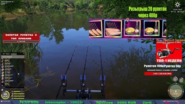 Поддержка донатом https://clk.li/MAnW Альтернативный донат https://www.donationalerts.com/r/kalyamba11 5536913964533059 карта Тинькоф Если стрим лагает,смотри стрим на трово https://trovo.live/s/Kalyamba_na_Ribalke Тг https://t.me/kalyamba_na_ribalke Мой ВК - https://vk.com/kalyantv НИК в игре kalyan11 НАШ ДС https://discord.gg/4ZzSQkQtsK Заказ водоема на 1 час - 500р ( весь стрим 2500р ) Модерка на канале 1300р ( каждая следующая на 100р больше) ✅Призы в рулетке "ЗОЛОТАЯ" 500р ✔ ЗОЛОТО ✔ ПРЕМ ✔ КАТУШКИ РАПТОР 40, ВЕНГИ, ТАЙГА, СИЛЬВЕР 80, И другие ✔ ПАЛКИ ПИЛКЕРНАЯ, ДОНКА МОРСКИЕ, ✔ РОД ПОД, СТУЛЬЯ ✅Призы в рулетке СТАНДАРТ : 100р ✔ катушкИ РАПТОР 40, ВЕНГИ, ТАЙГА, СИЛЬВЕР 80, И другие ✔ катушки 60 для медного ( ЭВИИ, НАТОРЫ, ГОЛДА, и тд) ✔ ПИЛКЕРНОЕ УДИЛИЩЕ КОРОЛЕВА ОКЕАНА ✔ Морское Донное удилище ✔ прем ( 3, 7, 30 дней) ✔ золото ( 1, 3, 5, 10, 20 ,50) ✔ билет на море ( 1, 3, 5 дней) ✔ голд наживка и др. ✅Призы в рулетке "СТАРТОВАЯ" 50р ✔ катушка Венга ✔ катушка "silver80" ✔ катушка "БЕЛЫЙ КАЛИБР" ✔ катушка "Черный калибр" ✔ катушка "Протон" ✔ катушка "Нарга 6000" ✔ Набор Фидерист и спинингист ✔ Карповик Фортуна ✔ фидерные удилища ✔ прем, золото, алкашка, наживки и тд P.s Рулетка это не казино, а награда за поддержку стримера. Вечный ТОП ПОДДЕРЖКИ (10.06.2025) 1. Леха сварной 214 572 2. Dimon_pokemonchik 127 034 3. Skreb79 103 061 4. Interceptor 96 230 5. FishRus86 82 500