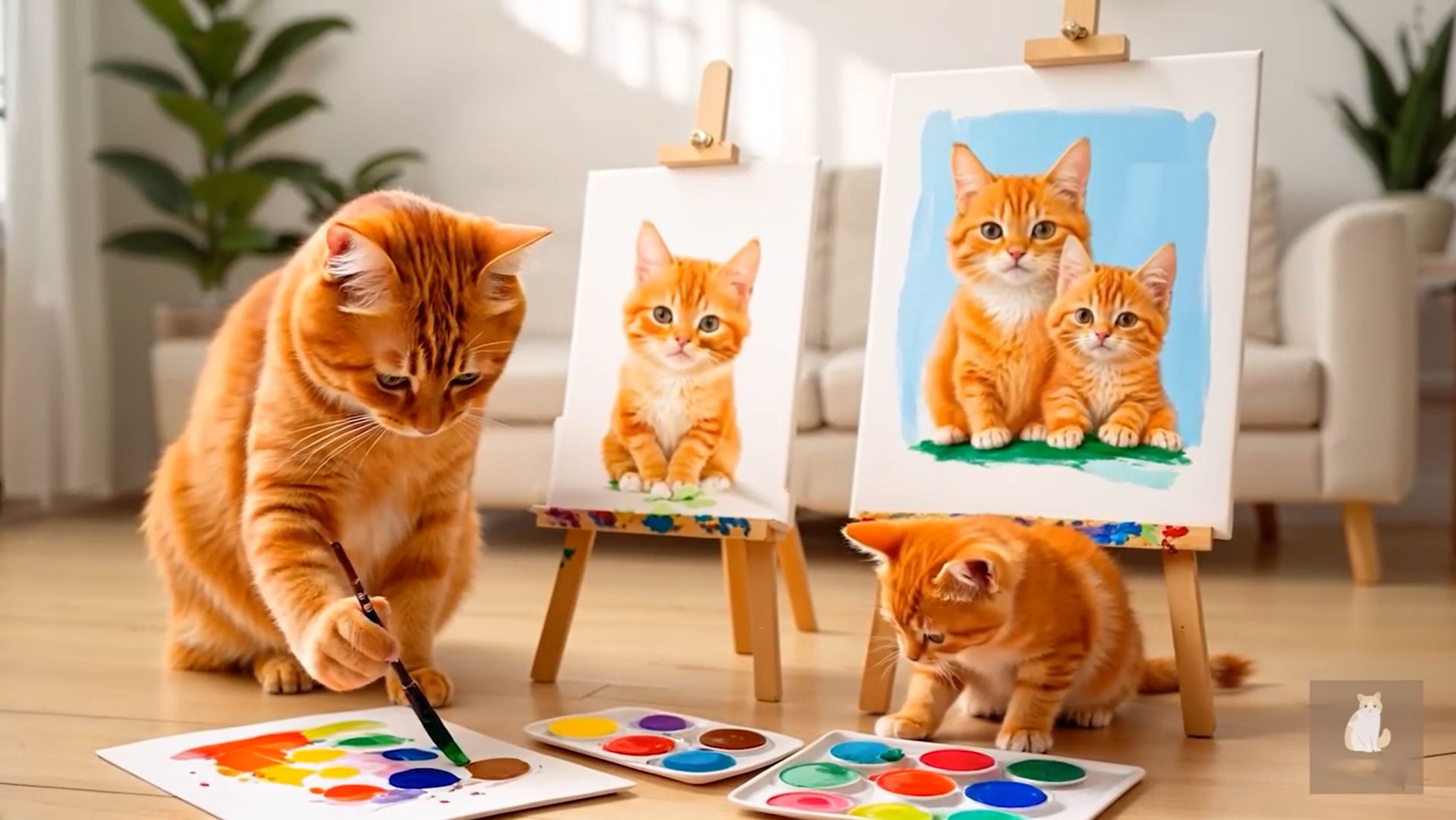 😹Мама кошечка рисует красивую картину со своим маленьким котёночком🔥