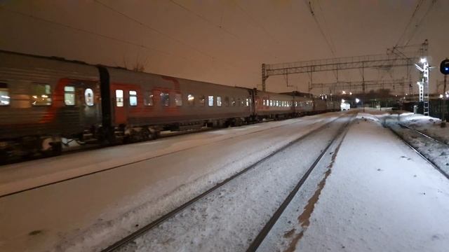 1 февраля 2022 года в 18:37 станция Царицыно курское направление Московская железная дорога through the wilds on 2 main! EP2K-191 with train No. 136 Makhachkala - St. Petersburg February 1, 2022 at 18:37 station Tsaritsyno Kurskoe direction Moscowskaya railway
