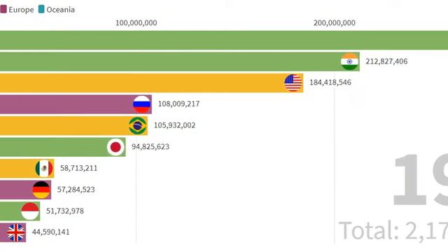 График населения разных стран с 1960 до 2016