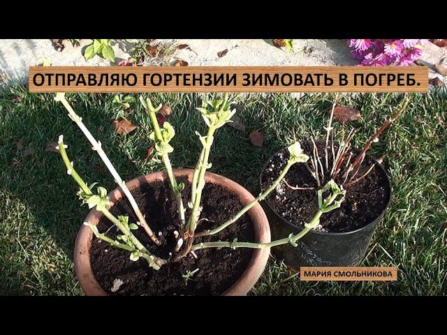 Отправляю крупнолистные гортензии зимовать в погреб .