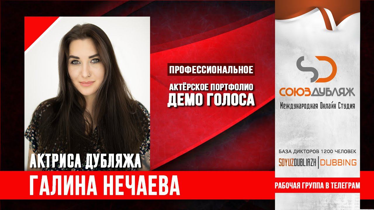 #СоюзДубляж #БазаДикторов #Озвучка ✔️Галина Нечаева, актриса дубляжа - диктор озвучивания. Международная Онлайн-Студия "СОЮЗДУБЛЯЖ" - профессиональная озвучка и дубляж. ▪️Рабочая группа в Телеграм: https://t.me/soyuzdubliazh ▪️Контакт для связи: https://t.me/SoyuzAdmin ▪️Подпишись:https://www.youtube.com/c/SOYUZDUBLIAZH ▪️Сайт: https://www.soyuzdubliazh.com/ Лучшие голоса для вашей аудиорекламы и видеороликов. База дикторов - 5 000 человек, профессионального уровня на ENG| FR| TR| RU| ISR| AZ| UA| KZ| UZ| языках. Мужские и Женские топовые голоса для озвучки любых проектов, таких как: Рекламы, Презентации, Фильмы, Сериалы, Игры, Мультфильмы, ТВ Шоу, Аудио-видео визитки. ✔️Сотрудничая с нами вы получаете свой проект под ключ, не выходя из дома или офиса. Наша слаженная команда из лучших дикторов, актёров озвучивания, режиссёров и звукорежиссёров в кратчайшие сроки озвучат или отдублируют ваш заказ на профессиональном уровне. Образцы работ нашего портфолио вы сможете посмотреть на канале СОЮЗДУБЛЯЖ. ВНИМАНИЕ: ✔️Мы приглашаем специалистов озвучки к сотрудничеству в нашей команде. Вы можете пройти по ссылке в наш телеграм канал и связаться с Админом для обсуждения. ✔️Всем заказчикам подобных медиа проектов по озвучки и дубляжу фильмов, сериалов, документалок обращаться непосредственно к Админу Телеграм группы СОЮЗДУБЛЯЖ, пройдя по ссылке: Проходи по ссылке: https://t.me/soyuzdubliazh International Online-Studio SOYUZDUDLIAZH presents a highly professional approach in voice-over and dubbing. ▪️Our working group https://t.me/soyuzdubliazh ▪️Chief manager https://t.me/SoyuzAdmin ▪️Follow https://www.youtube.com/c/SOYUZDUDLIAZH ▪️Web: https://www.soyuzdubliazh.com/ We offer You the best Voices for your Audio commercials and Video`s. Our Database contains over 5 000 voices of native speakers and high-class foreign language specialists in ENG| FR| TR| RU| ISR| AZ| UA| KZ| UZ|. Male & Female top level voices for all the variety of dubbing projects such as commercials, presentations, movies, TV-series, video and computer games, cartoons, TV-shows, audio & video portfolio’s – all in one place. As your business partner we guarantee a turn-key project without you leaving your house or office. Our target is to make sure that the dubbing of your project is made as quick as possible by a well-coordinated and professional team of the best speakers, film and sound directors. To whom it may concern! We invite dubbing specialists to join our team. Please contact our manager on Telegram https://t.me/soyuzdubliazh