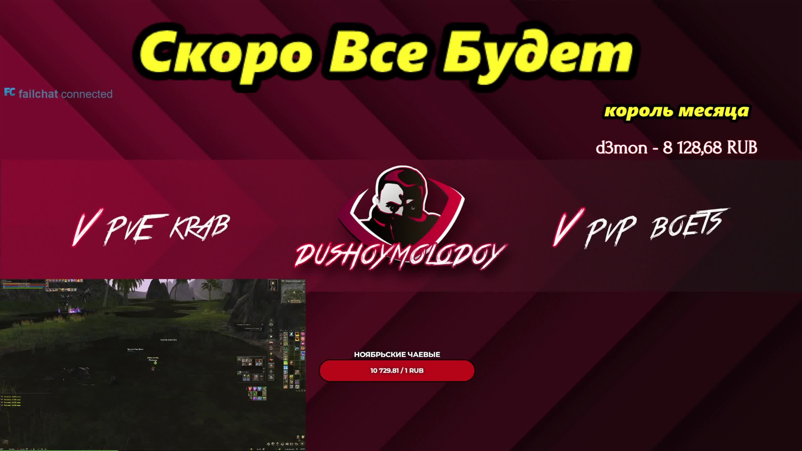 💪💪💪Ссылка на сервер с бонусами для новичков и вернувшихся игроков - https://ru.4game.com/s2s/dushoymolodoy_eva (версия Project Eva) https://4ga.me/essence_DushoyMolodoy (версия Essence) https://ru.4game.com/s2s/lineage2_dushoymolodoy (версия Main) https://ru.4game.com/s2s/legacy_dushoymolodoy (версия Legacy). От души благодарю! Получай подарки за предрегистрацию в новой ММО Grand Saga - https://4ga.me/3TdxaO0 Реклама. ООО «Иннова Дистрибьюшен», ОГРН 1077763692720 Erid: 2VtzqwJXVhv Erid: 2VtzqxcGsyT 📢📢📢 Ссылки на все мои социальные сети, где проходят анонсы роликов/стримов: https://t.me/dushoymolodoystream https://discord.gg/RDGqZya https://vk.com/dushoymolodoy Твич канал https://www.twitch.tv/dushoymolodoy Команды в чате: !ref, !tg На всякий случай: 📢📢📢Видеоролики уже дублируются сюда: https://zen.yandex.ru/id/622b53a99fefa169212eff8e 📢📢📢 Стримы будут тут: https://trovo.live/dushoymolodoy Не забывай оценивать видео лайком/дизлайком, это очень помогает в продвижении, а также подписываться на канал. 🌟🌟🌟Поддержать рублем https://www.donationalerts.com/r/dushoymolodoy Огромное спасибо за поддержку. Дай Бог Вам здоровья! 1. peaceducks_ - 21 011 rub 2. ErementarLightning - 15000 rub 3. Амири - 15000 rub 4. Юрий Иванов - 11850 rub 5. vitechek_tu_ru_ru - 10570 rub 6. Gandik - 6576 rub 7. Poggrimmon - 5230 rub 8. CyberHelper - 5000 rub 9. SecretCode - 3665 rub 10. Tangens (Дмитрий) - 3600 rub И всем остальным огромное спасибо за поддержку! Обновлено 04.09.22 #lineage2 #l2main #Lineage2Essence