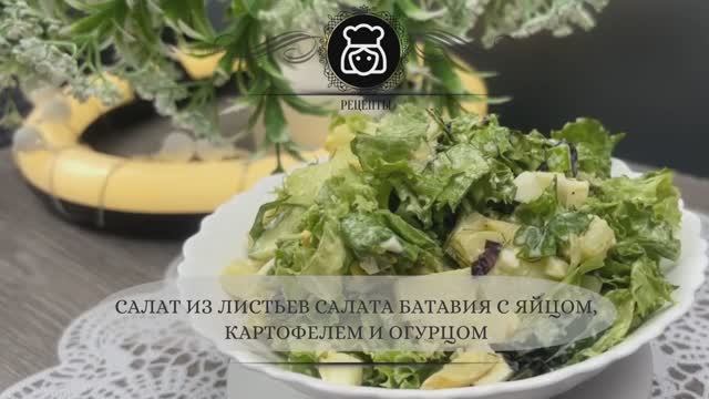 Салат из листьев салата Батавия с яйцом, картофелем и огурцом
