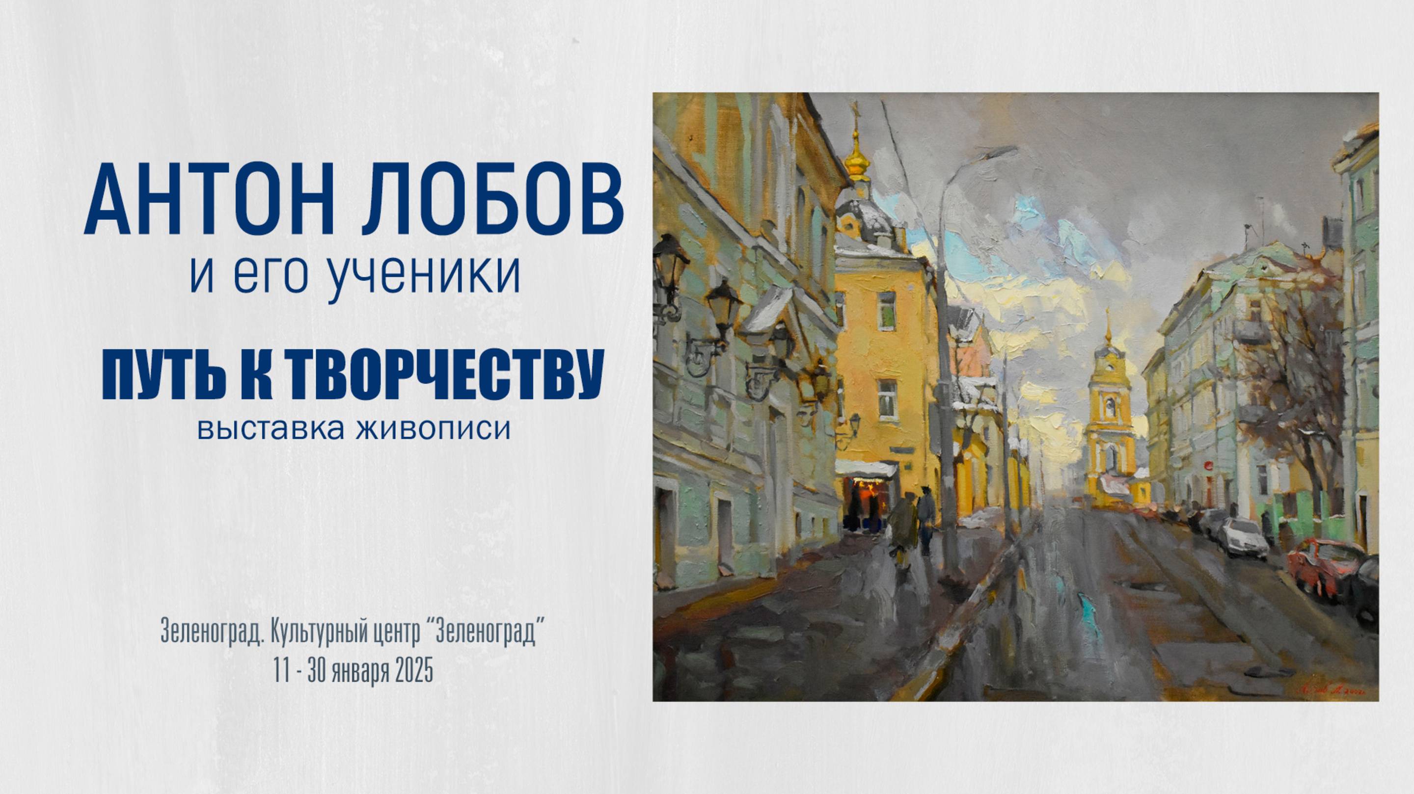 Выставка живописи Антона Лобова и его учеников «Путь к творчеству», 11 – 30 января 2025 Зеленоград. Культурный центр «Зеленоград» Дата съемки: 29 января 2025 На выставке живописи «Путь к творчеству» представлены работы Антона Лобова и его учеников. Антон Лобов – выпускник Российской академии живописи, ваяния и зодчества Ильи Глазунова, член Союза художников России. Сотрудничает с известными арт-галереями России и зарубежья, принимает участие в российских и международных выставках, пленэрах и аукционах. Живописные полотна художника находятся в музеях России, корпоративных собраниях и частных коллекциях. Картины Антона Лобова создают настроение спокойной пространственной вечности. Художник словно приглашает зрителя замедлиться и оглянуться вокруг, обратив внимание на то, мимо чего мы часто проходим, не замечая за повседневной суетой.