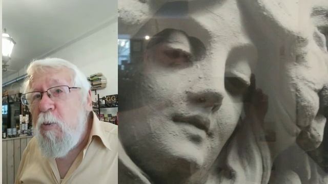 Каменные лица профессора Никольского на улице Никольской в Арт-кафе Храма Успения. Москва 25.08.2021