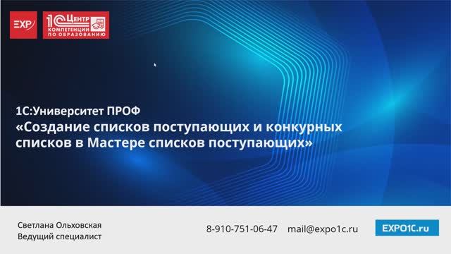 Приемная кампания 2026. Конкурсные списки в 1С:Университет ПРОФ. В видео демонстрируется функционал "1С:Университет ПРОФ" мастера списков поступающих. Основные настройки для создания конкурсных списков и приказов на зачисление. Услуги по внедрению 1С:Университет (в том числе обучению очно и удаленно) оказывает компания "Экспонента",статус 1С:Центр компетенции по образованию. Контакты: Киселева Нина Сергеевна; Тел:8(910)751-0647 сайт:https://expo1c.ru/ почта:mail@expo1c.ru tg:https://t.me/Exp_1C_CKO группа для обсуждения :https://t.me/expo1c_analytics_university канал новостей компании: https://t.me/Exp_1C_Universitet