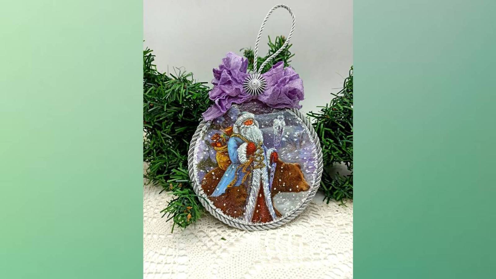 Если рисунок больше, чем заготовка. Елочная игрушка "Дедушка Мороз".