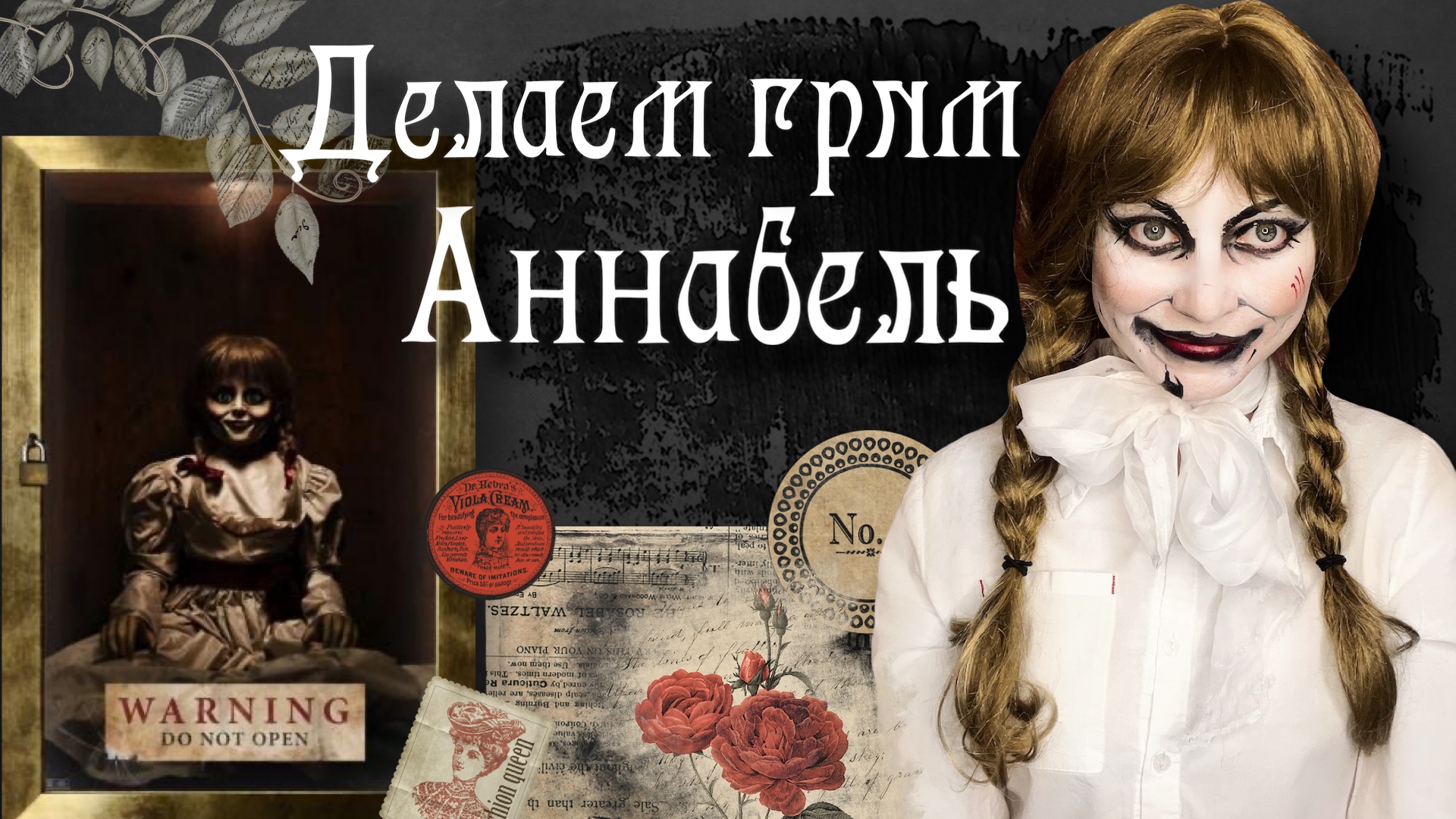 Всем привет! В этом видео я показываю туториал по гриму куклы Аннабель-мой любимый персонаж хорор-вселенной «Проклятье». После того,как я Снилс видео в этом образе,было очень много просьб снять подробный процесс создания.Приятного просмотра )