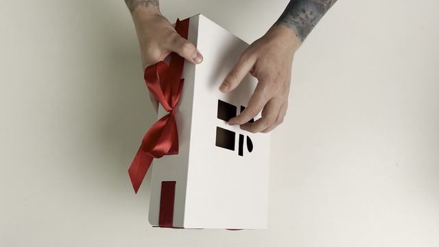 Новогодняя коробка Gofromir - 260х170х80 белая с красной лентой (с вырезом "подарок")