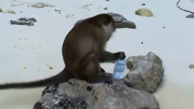 На острове Краби обезьянка получила закрытую бутылку с водой и сумела напиться