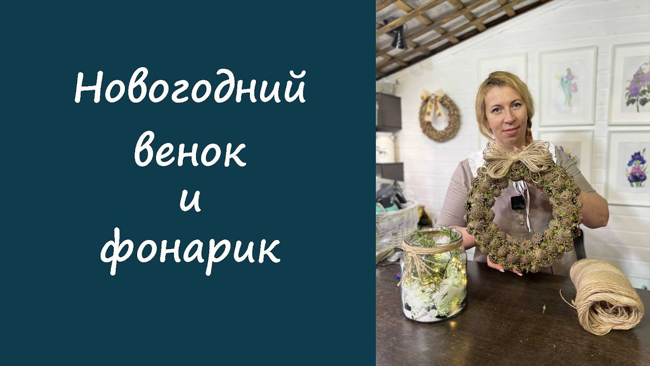 Новогодний венок и фонарик своими руками