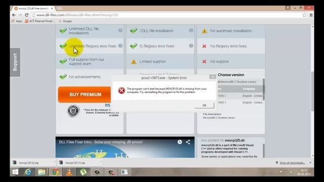 This video contains how to fix both MSVCP120.dll and MSVCR120.dll errors.(programme can't be start because MSVCP120.dll is missing from from your computer)