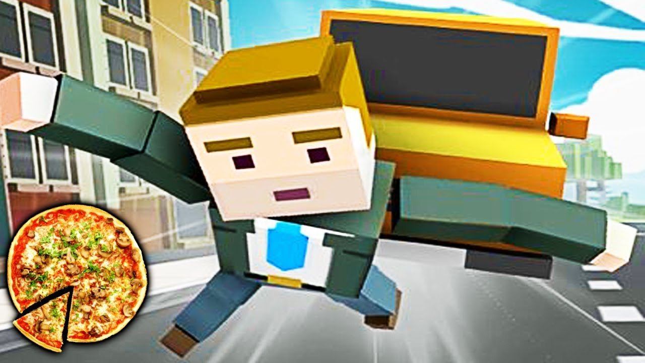 Работаю Доставщиком Пиццы в мире Квадратного ГТА веселое детское видео про квадратных человечков!!!