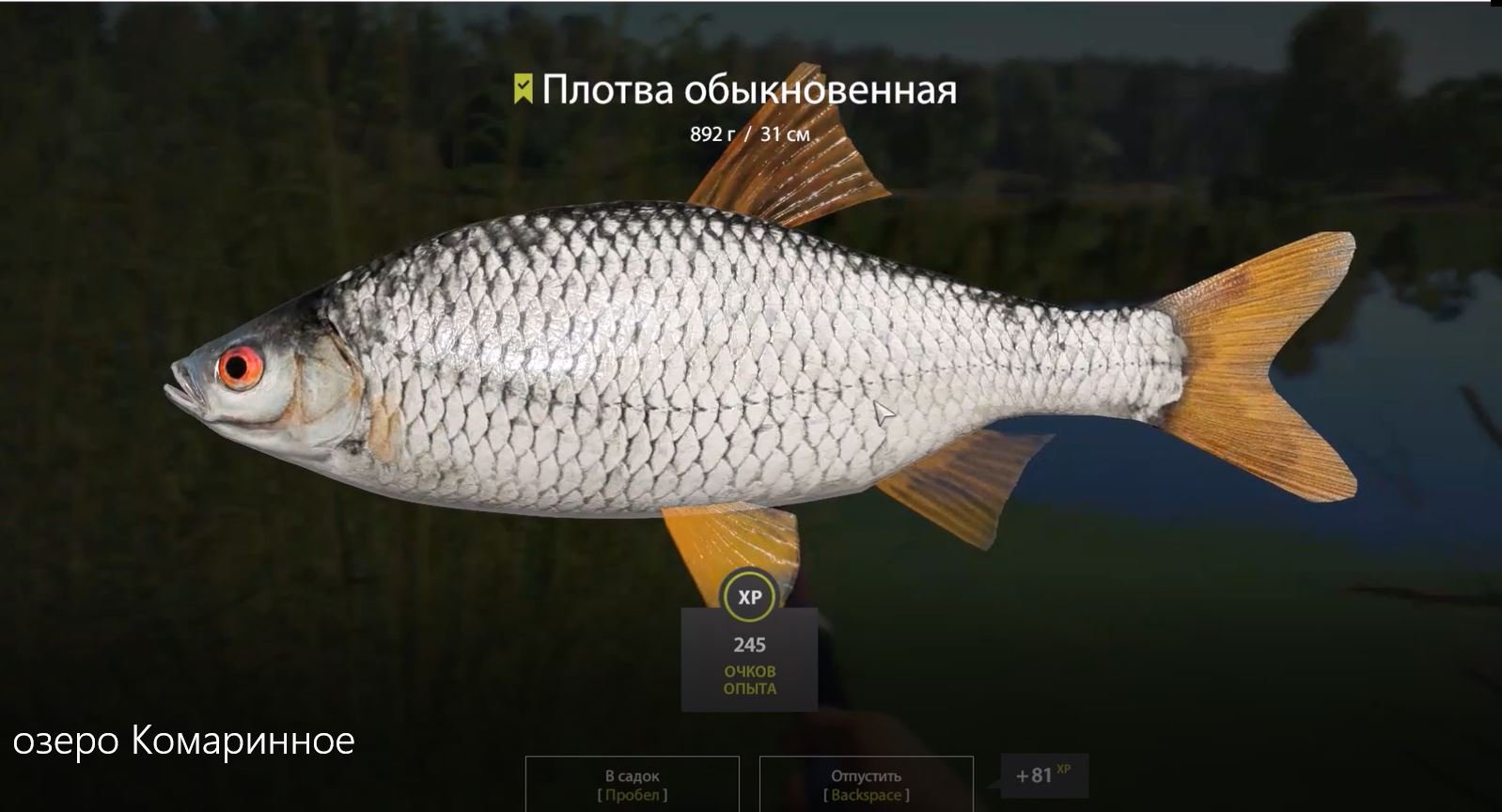 Плотва, озеро Комариное, игра Русская Рыбалка 4