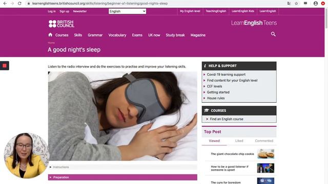 A video lesson for 8 grade students. Go through the link below in order to open website: https://learnenglishteens.britishcouncil.org/skills/listening/beginner-a1-listening/good-nights-sleep Go through the link below in order to leave a comment on a whiteboard: https://miro.com/app/board/o9J_knXsRhk=/