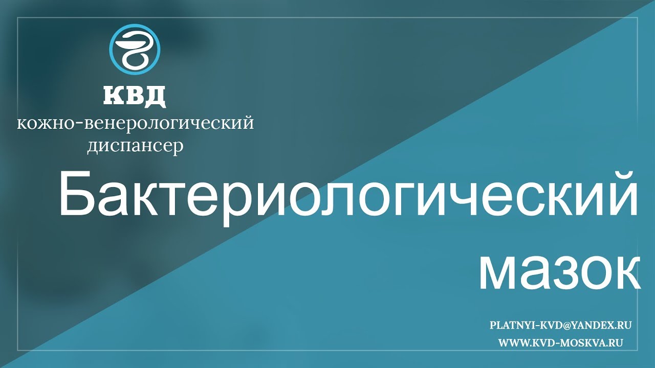 Бактериологический мазок - это посев выделений из половых путей на специальные жидкие или твердые питательные среды. Можно взять из уретры, влагалища или цервикального канала, при помощи стерильных инструментов (зонд или петля). Посев биоматериала происходит на питательную среду, где затем выращиваются колонии микроорганизмов в течение 3-10 дней. Подробнее - https://kvd-moskva.ru/bakteriologicheskiy-mazok/ Для подробной консультации по этому вопросу, обращайтесь в платный центр КВД-Москва. Наши телефоны: 8 (495) 642-30-37, 8 (495) 532-66-57 Наш e-mail: platnyi-kvd@yandex.ru Наш сайт: http://kvd-moskva.ru