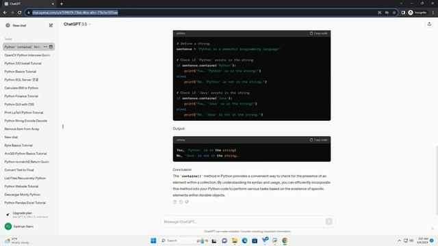 Instantly Download or Run the code at https://codegive.com title: understanding the python contains() method: a comprehensive guide introduction: python is a versatile programming language known for its simplicity and readability. one of the many useful methods in python is contains(), which is used to check whether a certain element exists within a collection, such as a list, tuple, or string. this tutorial aims to provide a comprehensive understanding of the contains() method in python, including its syntax, usage, and examples. syntax: the syntax of the contains() method in python varies slightly depending on the type of collection being checked. generally, it follows the format: here, collection is the iterable object being checked, and element is the item being searched for. usage: the contains() method returns true if the specified element is found within the collection, and false otherwise. this method is commonly used in conditional statements and loops to perform different actions based on whether an element exists in the collection or not. code example: let's explore some examples of using the contains() method with different types of collections in python. output: output: conclusion: the contains() method in python provides a convenient way to check for the presence of an element within a collection. by understanding its syntax and usage, you can efficiently incorporate this method into your python code to perform various tasks based on the existence of specific elements within iterable objects. chatgpt ... #python #pythoncontainsstring #python #python python contains operator python contains string python contains regex python contains array python contains substring python contains function python contains list python contains python contains key python contains case insensitive python method naming convention python method chaining python method may be static python methods list python method overloading python method definition python methods python method decorator