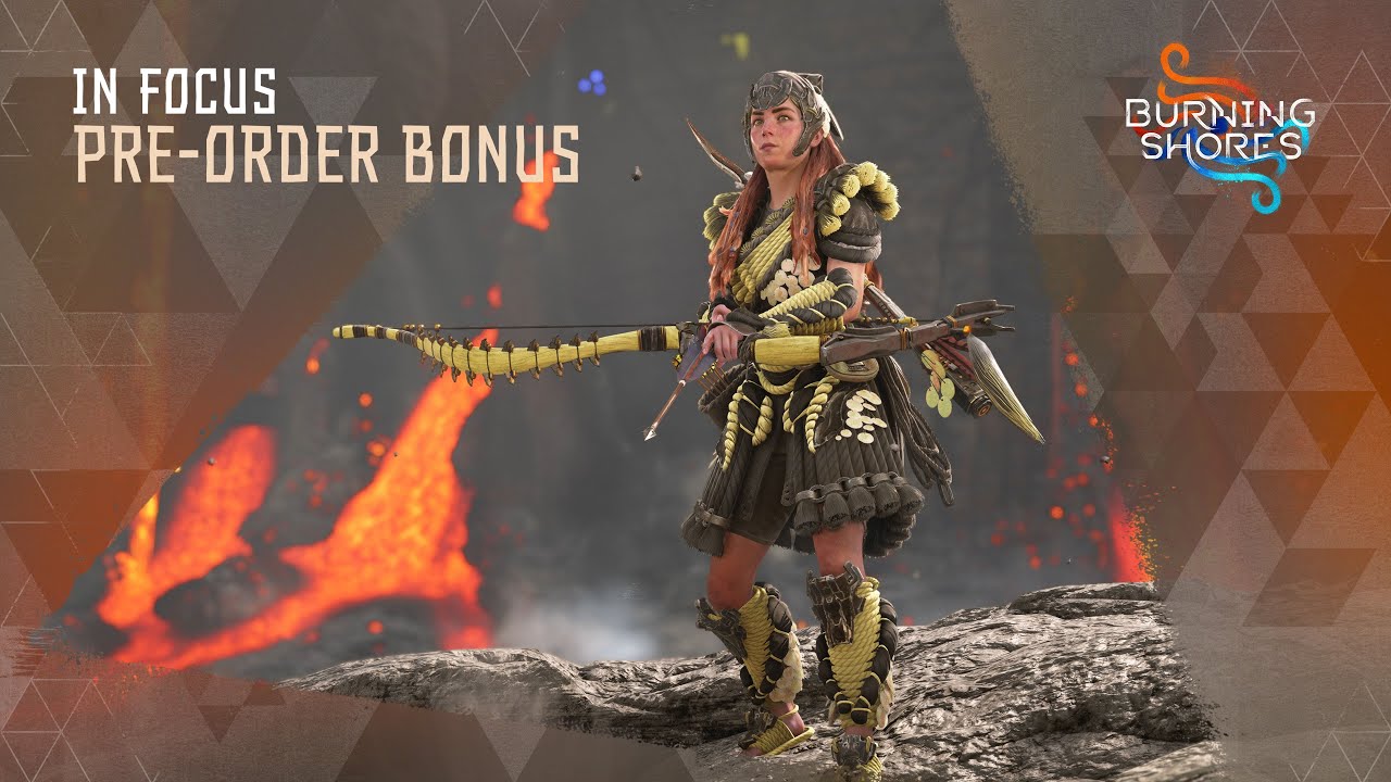 Horizon Forbidden West: Burning Shores выйдет на PS5 19 апреля. Оформите предварительный заказ сейчас, чтобы получить доступ к следующим цифровым бонусам: ● Краска Blacktide (продается в первом магазине красителей) ° Экипировка командира Black tide Quen (доступна в торговом центре Sitcher в конце флота) ● Лук Blacktide Sharpshot (приобретается у торговца-охотника во Флитс-Энде)