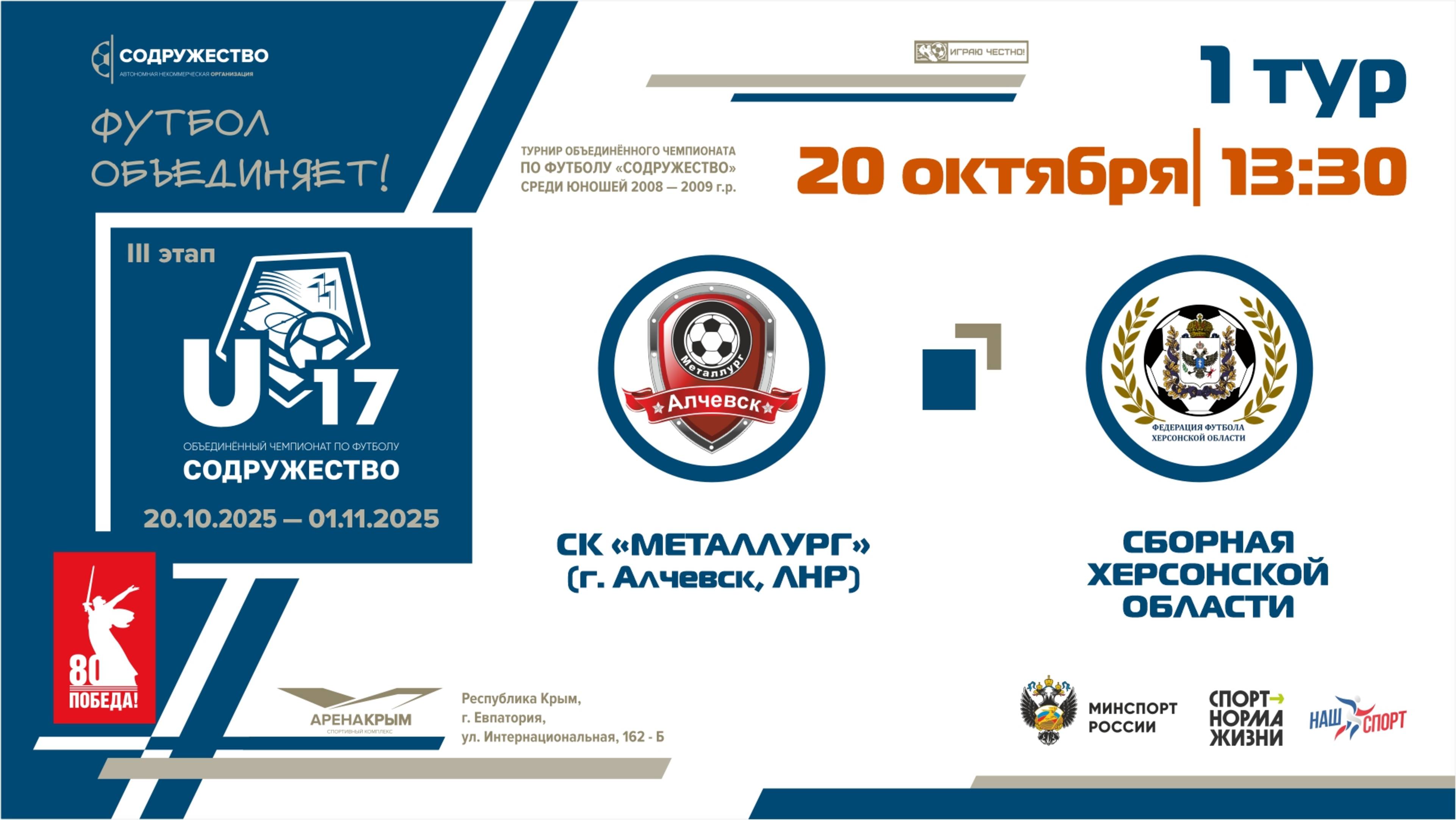1 ТУР | U-17 | СК «Металлург» (г. Алчевск, ЛНР) – Сборная Херсонской области | 20.10.2025