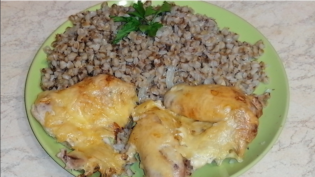 Куриные крылышки с гречкой в духовке