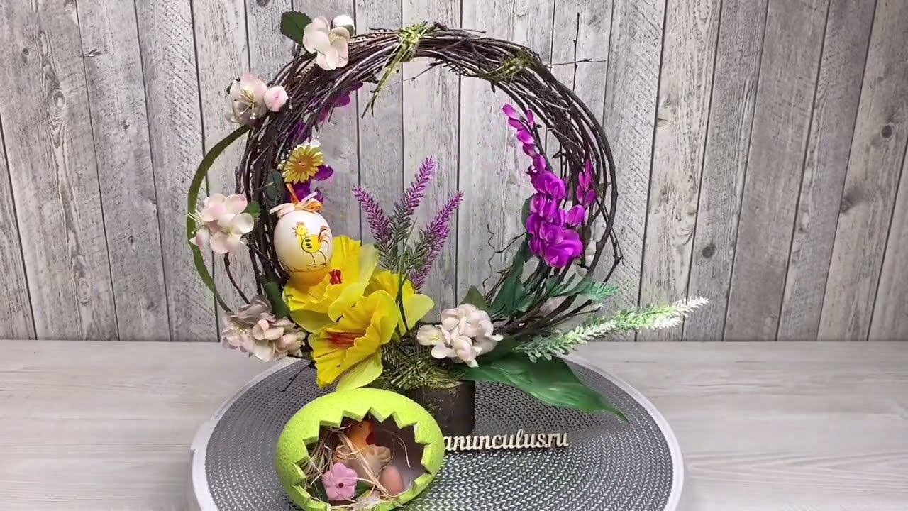 Пасхальный венок из берёзовых веток и искусственных цветов на тканевой основе. Детальнее о товаре https://ranunculus.ru/interernye-kompozitsii/paskhalnyy-venok/ Смотрите также: Композиции из искусственных цветов на стол https://ranunculus.ru/interernye-kompozitsii/ Наш интернет-магазин https://ranunculus.ru
