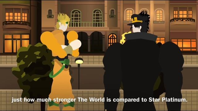 Made with Sticknodes Sticks used: Jotaro: http://sticknodes.com/sticks/part-3-jotaro-kujo-360-pack-zip/ DIO: http://sticknodes.com/sticks/part-3-dio-360-pack-zip/ The World: http://sticknodes.com/sticks/the-world-pack-4-zip/ Star Platinum: http://sticknodes.com/sticks/part-3-star-platinum-360-pack-zip/ Lines: http://sticknodes.com/sticks/static-or-wind-effect-nodes/ Zoom: http://sticknodes.com/sticks/efecto-zoom-nodes/ Background: http://sticknodes.com/sticks/jojo-part-3-final-battle-background-pack-zip/