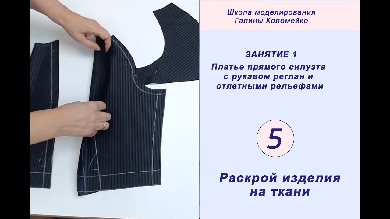 Школа моделирования. Прямое платье с рукавом реглан и отлетными рельефами. Часть 5. В этом видео мы кроим изделие на ткани